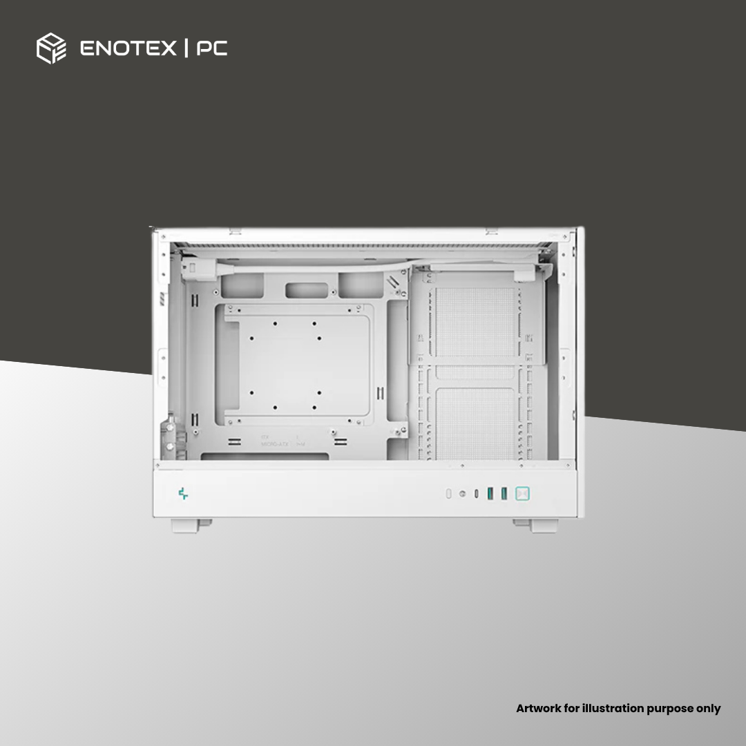 Product Dimensions 438mm × 225mm × 312.5mm (L×W×H)Net Weight 5.3KgMaterials ABS + SPCC + Tempered GlassMotherboard Support Mini-ITX / Micro-ATX / Micro-ATX (Rear Connector)Front I/O Ports USB3.0 ×2, Gen2 Type-C ×1, Audio/Mic ×13.5" Drive Bays 12.5" Drive Bays 1Expansion Slots 4 SlotsPre-Installed Fans NoneFan Support Front: 2 × 120mmTop: 3 × 120mm / 2 × 140mmRear: 1 × 120mmRadiator Support Front: NATop: 120 / 240 / 360mmBottom: NARear: 120mmCPU Cooler Height Limit 174mmGPU Size Limit 388 / 413mm (No Front Fans)Power Supply Type ATX PS2 (maximum length: 150mm)EAN 6933412765240P/N R-CH260-WHNGM0-G-1